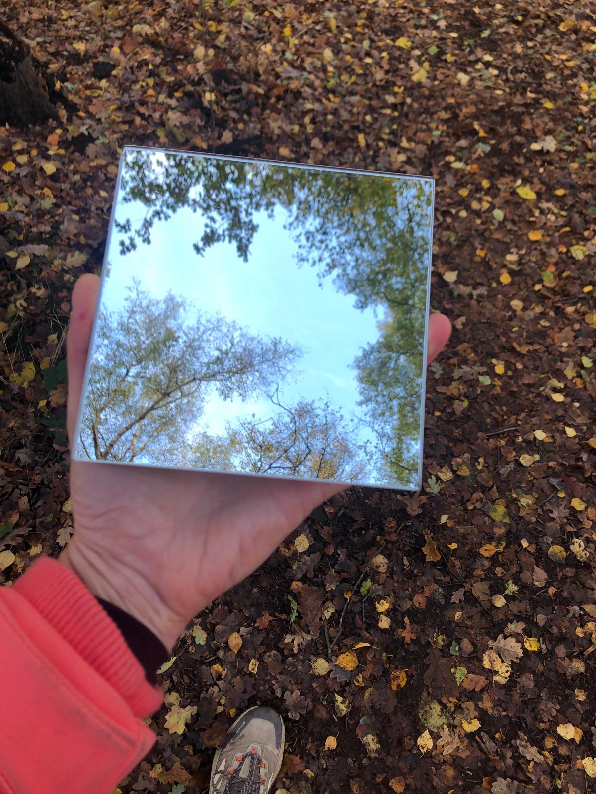 Vanaf de eerste keer dat we dit met een groep deden, is het onze favoriete oefening: spiegelwandelen in het bos.