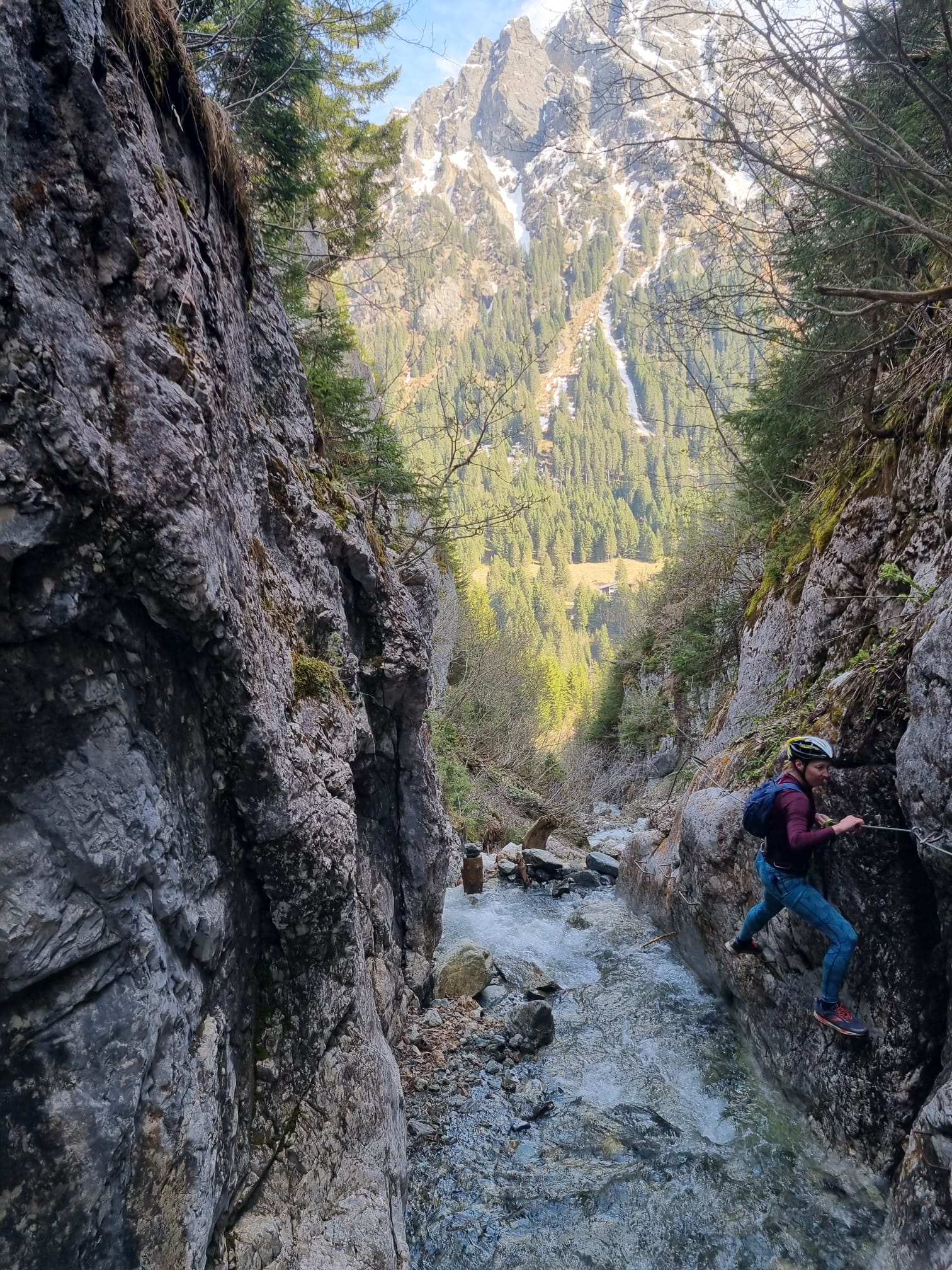 Ik hang in een nauwe kloof tegen een koude natte rotswand, ingesnoerd in een klettersteigset en gezekerd aan een stalen kabel die met pinnen in de rotswand is verankerd. Achter mijn rug een donderende waterval en kolkende poelen ijskoud smeltwater. Een gevaarlijke, onvoorspelbare watermassa. Wat een geweldig geweld!